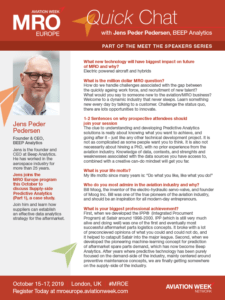 Aviation week published a series of quick chat with MRO Europe speakers.